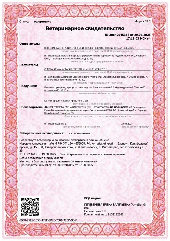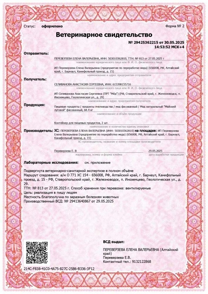 Кроме того, у нас работает собственная лаборатория, где каждый продукт проходит проверку качества. Мы уверены, что только так можно сохранить подлинный вкус и пользу настоящего мёда.